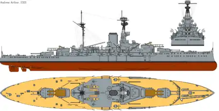 4×2 381-мм/42 Mk I 14×1 152-мм/50 BL Mk XII |