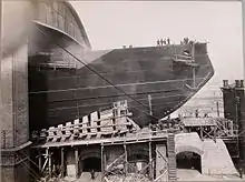 Конструктивную основу набора корпуса составляла коробчатая килевая балка до двух метров высотой и 150 шпангоутных рам, расположенных со шпацией 1200 мм. Для постройки корпуса применялись три сорта стали: обычная судостроительная, повышенного сопротивления и высокого сопротивления, имевшими, соответственно, предельное сопротивление в 42, 63 и 72 кгс/мм² и предел растяжения не менее 20, 18 и 16 %[29]. Корпус имел три полные палубы и разделялся на водонепроницаемые отсеки тринадцатью поперечными переборками и двумя продольными, отстоявшими на 3,4 м от бортов.
