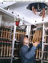 Главным оружием «Аляски» стали новейшие 12-дюймовые пушки Мк-8 с длиной ствола 50 калибров, разработанные специально для линейных крейсеров и принятые на вооружение в 1944 году. Стрельба «супертяжелыми» бронебойными снарядами Mark 18, весившими 517 кг, позволяла орудиям Mark 8 сравняться с более крупными представителями предыдущего поколения корабельной артиллерии по пробиваемости бортовой брони, и превзойти их по пробиваемости бронепалубы. Значительное улучшение дальности стрельбы и массы снаряда, по сравнению с предшественниками, позволило называть Mark 8 «самым мощным орудием этого калибра, стоявшим когда-либо на вооружении»[3]. Основной калибр «Аляски» мог эффективно пробивать как бортовую, так и палубную броню вражеских кораблей на всех боевых дистанциях.