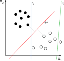 - Метод опорных векторов — алгоритм расширения разделительной зоны в гиперплоскости решений между образцами входных данных.