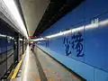 На всех станциях линии Айленд, за исключением надземных Ханфачхюнь и Чхайвань, есть свои китайские названия, выполненные китайской каллиграфией как часть цветового оформления станции. Иероглифы выполнены крупным шрифтом, чтобы облегчить психологический эффект, возникающий от узких и местами изогнутых платформ[14].