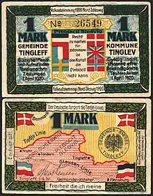 Однако из-за политической ситуации сразу после окончания Первой мировой войны линия Тидье, которая создала бы столь же крупные меньшинства по обе стороны границы, не была выбрана в качестве границы, также не был выбран компромисс, который включал бы только районы области Тондерн, в пользу более неблагоприятного для Германии варианта границы.