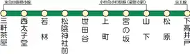 | Сангэндзяя | 三軒茶屋 | 0.0 | Линия Дэнъэнтоси | Сэтагая |