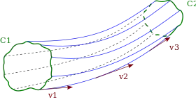 Если в потоке выбрать площадку S и провести через границу этой площадки (C1 на рисунке слева) векторные линии, то образуется фигура, называемая векторной трубкой (при этом векторные линии, проходящие через , целиком лежат внутри векторной трубки)[2].