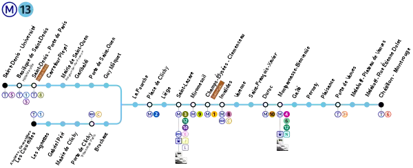 Линия 13 — одна из 16 линий Парижского метро. До 1930 года называлась Линия B. На 2008 год соединяет северные пригороды Парижа (Женвилье, Ле-Куртий и Сен-Дени) с южными (Шатийон, Монруж, Малакофф), проходя через центральную часть агломерации. На большей части станций линии установлены автоматические платформенные ворота.[1][2]