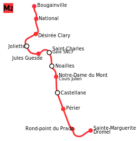 - Второй участок пустили 1 февраля 1986 года на участке Castellane — Joliette. Длина — 3,64 км, 5 станции.