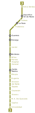 Линия 3 метрополитена Мехико — это третья линия метрополитена Мехико. На карте метрополитена окрашена в жёлто-зелёный цвет.