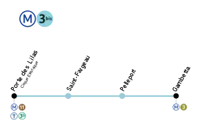 Линия полностью подземная. Её трасса пролегает полностью под северо-восточным отрезком авеню Гамбетта, на участке от площади Гамбетта до площади Порт де Лила. На перегоне Гамбетта — Пельпор начинается служебная соединительная ветвь на линию 3, перестроенная из бывшей разворотной петли линии 3.