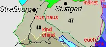 На юго-западе от линии происходит изменение верхненемецкого корневого дифтонга au в u или uu: Haus → Hus, Huus. Между Дунаем и Неккаром линия натыкается на изоглоссу mähet-mähe(n), которая проходит к Карлсруэ (см. Линия Карлсруэ). Приблизительно линия проходит через города Вертах — Исни — Равенсбург — Тутлинген — Виллинген-Швеннинген — Фройденштадт — Пфорцхайм — Эттлинген — Вейсенбург.