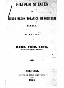 - «Filicum species in horto regio Berolinensi cultae», Берлин, 1841.