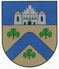 В гербе изображена местная церковь. Трилистники символизируют сельское хозяйство, а стропило — характерный изгиб реки[5].