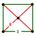 | Линк вершины: Неоднородная квадратная пирамида | ![]() Диаграмма Шлегеля |
