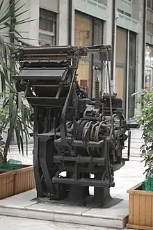 Линоти́п (от лат. linea — «линия» и греч. τύπος — «отпечаток») — вид полиграфического оборудования, наборная строкоотливная машина, изобретённая в 1884 году (патент получен 26 августа 1884 года) американским инженером Отмаром Мергенталером. Линотип предназначен для отливки строк текста из типографского сплава - гарта. Строки текста формируют макет страницы. Страница может быть напечатана (размножена) методом высокой или глубокой печати на тигельных и ротационных машинах.
