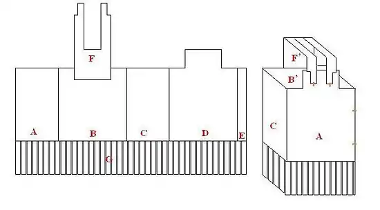 Линоторакс делался из нескольких слоёв льняной ткани, склеенных вместе, общей толщиной около 0,5 см. Основная часть панциря представляла собой нечто вроде широкой ленты с вырезами в районе пройм, которая оборачивалась вокруг корпуса и скреплялась на левом боку (A, B, C, D и E на схеме вверху). Нижняя часть этой основной детали разрезалась в виде лент (так называемые птеруги, на схеме обозначены буквой G), которые прикрывали верхнюю часть бёдер, не стесняя при этом движения ног. Изнутри прикреплялся ещё один слой ткани, птеруги которого располагались напротив разрезов птеруг внешнего слоя. На фигуре воина птеруги образовывали некое подобие фестончатой юбки, иногда они могли делаться отстёгивающимися. Сзади сверху крепилась деталь П-образной формы, концы которой перекидывались через плечи и фиксировались на груди (на схеме обозначено буквой F). Будучи отстёгнутыми, эти наплечники в силу своей эластичности распрямлялись и занимали вертикальное положение. Такие торчащие из-за спины наплечники можно увидеть на некоторых древнегреческих изображениях, и это даёт хорошее представление о степени упругости и жёсткости склеенной ткани. Иногда линоторакс мог дополнительно покрываться металлическими пластинами или чешуйками. Реплика линоторкса без металлических деталей, сделанная историком Питером Конноли, весила 3,6 кг, тогда как античная кираса с поддоспешником весила около 6 кг[2].
