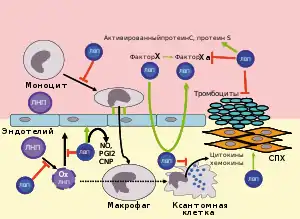 | ApoH | Связывает отрицательно заряженные молекулы, в первую очередь кардиолипин, и предотвращает активацию каскада свертывания крови за счет связывания с фосфолипидами на поверхности поврежденных клеток. Регулирует агрегацию тромбоцитов и экспрессируется в печени. |