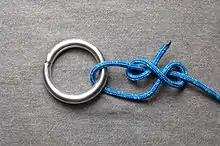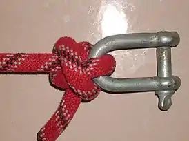 ![]() лисель-галсовый узел, завязанный на скобе | |