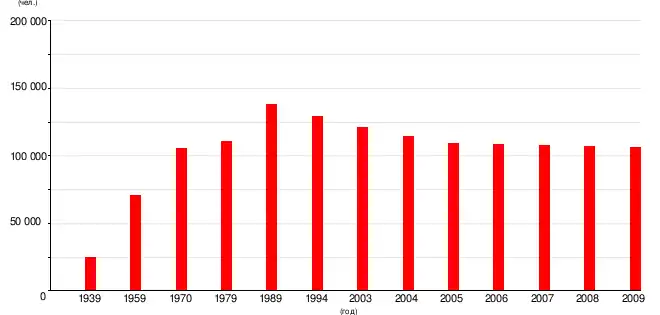 - По данным переписи (2001) года в городе проживало 122 тыс.чел.[8]