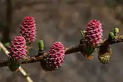 - Larix decidua f. rosiflora Szaf. — колоски розовые;