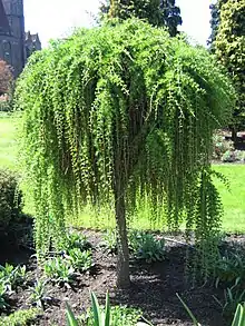- Larix decidua f. pendulina Regel — дерево с пониклыми ветвями и часто многовершинным стволом;