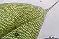 Клетки листа бывают двух основных типов: паренхиматические — обычно округлые или многоугольные (часто квадратные и шестиугольные), почти одинаковой длины и ширины, и прозенхиматические — узкие, вытянутые в длину, прямые, извитые, червеобразные с заострёнными, заходящими друг за друга концами. Клетки пластинки листа редко одинаковые. Верхняя часть листа обычно состоит из толстостенных паренхиматических мелких клеток, иногда мамиллозных (конусообразные выросты клеток без утолщения клеточных оболочек) или папиллозных. Клетки основания всегда несколько крупнее и резко отличаются от верхних клеток по форме.