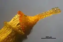 На верхушке стебля, в пазухах листьев, в месте отхождения листьев от стебля при росте возникают нитевидные образования из нескольких клеток, — булавовидные волоски. Их оконечная клетка выделяет слизь, защищающую точки роста стебля от высыхания.