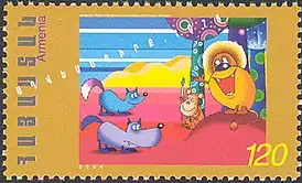 ![]() Почтовая марка с фрагментом из мультипликационного фильма «Лисья книга» | |