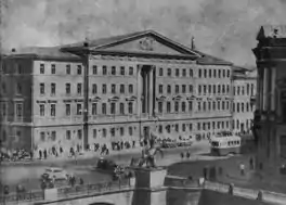 28 ноября 1941 года здание было повреждено фугасной бомбой. В 1947—1950-х годах по проекту Б. Н. Журавлёва и И. И. Фомина был построен новый дом с другим оформлением фасада, но с использованием старых конструкций фундамента и стен. [25]
