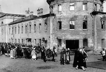 27 февраля (12 марта) 1917 г. около 6. часов утра матросы 8-го флотского экипажа, расквартированные в Крюковских морских казармах, вместе с рабочими судостроительных предприятий захватили Литовский замок. Были выпущены все заключённые, в том числе уголовники. Политические заключённые присоединились к восставшим и возглавили колонну демонстрантов под красными флагами. Здание подожгли[26]. Почерневшие стены Литовского замка долго стояли неубранными.[27]