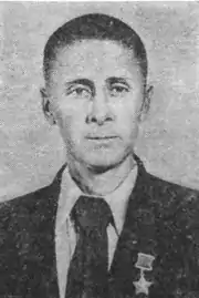 Указом Президиума Верховного Совета СССР «О присвоении звания Героя Советского Союза генералам, офицерскому, сержантскому и рядовому составу Красной Армии» от 10 января 1944 года за «образцовое выполнение боевых заданий командования на фронте борьбы с немецко-фашистскими захватчиками и проявленные при этом отвагу и геройство» был удостоен высокого звания Героя Советского Союза с вручением ордена Ленина и медали «Золотая Звезда» за номером 3644[1][2].