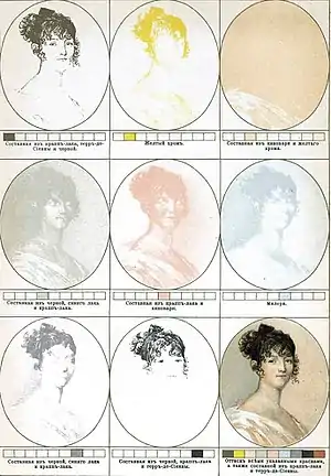 В становлении литографии в России как самостоятельной художественной дисциплины приняли непосредственное участие А. Е. Мартынов, А. О. Орловский, А. Г. Венецианов, П. Ф. Соколов, Е. И. Гейтман, К. П. Беггров, А. А. Васильевский, О. А. Кипренский, К. П. Брюллов, Е. И. Эстеррейх, С. Ф. Галактионов, П. Ф. Борель, В. И. Погонкин, П. И. Разумихин, А. М. Калашников, Л. А. Белоусов, И. С. Щедровский, А. А. Тон.