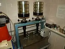 На данный момент в РФ список методов тестирования литых асфальтобетонов определяется разработанными фирмами-производителями стандартами организаций или техническими условиями, обязательства к применению которых берет на себя производитель. Литые асфальтобетоны в России испытывают на величину пористости минерального остова, остаточной пористости, водонасыщение, определение предела прочности при расколе при 0 °C, предел прочности при сжатии при 50 °C, удобоукладываемость. В странах Евросоюза требования к литым асфальтобетонам содержат функциональные требования и, как правило, не содержат конкретных цифровых значений показателей показателей физико-механических свойств, ограничиваясь классификацией по большому числу критериев качества[30]. Окончательное значение того или иного показателя свойств литого асфальтобетона определяется в проектной документации на объект строительства или может декларироваться национальными приложениями к евростандарту (Nationally Determined Parameters)[31], а также предприятием-изготовителем. Основным методом при определении реологических свойств литого асфальтобетона в большинстве стран мира является определение глубины вдавливания (пенетрации) в образец плоского штампа площадью 5 см² при постоянной вертикальной нагрузке (52,5 кг). Испытание проводят на кубических образцах материала размерами 7,07×7,07×7,07 см при температуре +40 °C, в течение 30 минут. Измеряется величина деформации образца под действием нагрузки с точностью до 0,01 мм. Европейская методика испытания базируется на германском методе, изложенном в DIN 1996, глава 13.