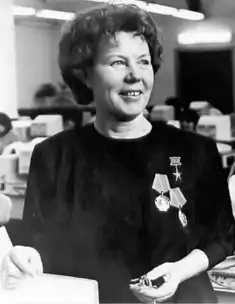 Указом Президиума Верховного Совета СССР от 16 января 1974 года «за выдающиеся успехи в выполнении и перевыполнении планов 1973 года и принятых социалистических обязательств» удостоена звания Героя Социалистического Труда с вручением ордена Ленина и золотой медали «Серп и Молот»[1].