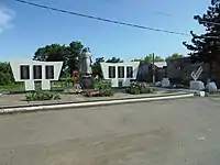 - Братская могила с мемориальным комплексом и однофигурным памятником высотой 2,8 м на постаменте.