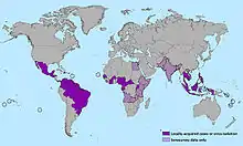 Источник инфекции и резервуар в дикой природе остаются неизвестными. Наиболее вероятно, что люди являются источником инфекции как минимум во время острых проявлений у них заболевания. Передача болезни к другим людям осуществляется трансмиссивным путём. Она происходит через укусы комаров рода Aedes, чаще всего вида Aedes aegypti, в тропических и экваториальных регионах.