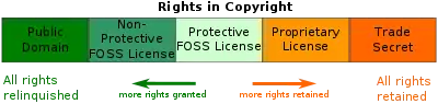 В отличие от проприетарных, свободные и открытые лицензии не оставляют права на конкретную копию программы её издателю, а передают самые важные из них (составляющие 4 свободы по определению Фонда СПО, или попадающие под другое определение свободного или открытого ПО) конечному пользователю, который и становится владельцем. В результате пользователь по умолчанию получает важные права, которые закон об авторском праве по умолчанию даёт только владельцу копии, однако все авторские права на ПО по-прежнему остаются у издателя. Примером свободной лицензии является GNU General Public License (GPL), которая даёт пользователю право самому распространять ПО под этой лицензией, участвовать в его обратной разработке или изменять другими способами. Тем не менее, перечисленные права обязывают пользователя ПО под GPL подчиняться определённым правилам, например, любые изменения программы, сделанные пользователем и распространённые дальше, должны сопровождаться исходным кодом этих изменений (см. копилефт).