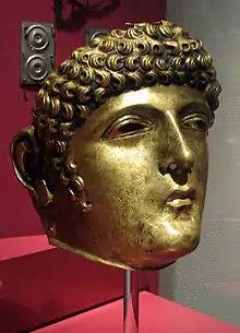 В Древней Греции и Риме существовали бронзовые или железные шлемы с антропоморфными личинами, закрывавшими всю голову. Их использовали всадники на турнирах, а также катафракты и знаменосцы, а также пехотинцы, например в Древней Греции IV века до н.э.. Внешне маски были в стиле греческих статуй, имели вырезы для глаз, носа и рта. Существует три гипотезы их происхождения: заимствование у этрусков, фракийцев либо парфян.