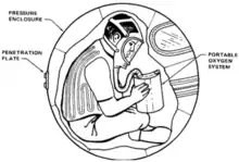 Личное спасательное средство для астронавтов было разработано для защиты и спасения людей в космосе в случае чрезвычайной ситуации, при нехватке скафандров[2]. Разработка прототипа устройства была выполнена в 1970-х — 1980-х годах для программы Спейс шаттл[2]. Данное устройство, обеспечивающее астронавта кислородом и газопоглотителем CO2 (скруббер), поддерживало жизнь человека в течение часа[3].
