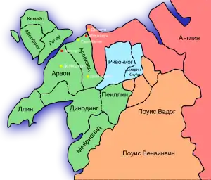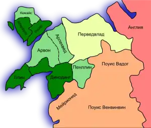 - До своего изгнания на север Маредид ап Рис Григ владел чуть более чем половиной этих земель.