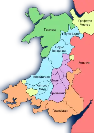 Юго-восточная часть Pura Wallia управлялась Лливелином самостоятельно, и землевладельцы Биэллта, Гуртейрниона и Элвайла держали землю напрямую от принца. Таким образом, несмотря на некоторые внутренние противоречия «валлийский» Уэльс надёжно находился под рукой принца, гораздо большую опасность для его власти представляли претензии лордов валлийской марки и возрастающее вмешательство короля Англии в валлийские дела[39].