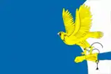 «Прямоугольное синее полотнище с отношением ширины к длине 2:3, несущее у свободного края белую полосу особой формы и изображение сокола (поверх границы полосы) и руки сокольничьего (отходящей от свободного края), выполненное в жёлтом и голубом цветах».