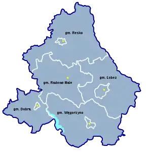 - городско-сельские гмины: Гмина Добра, Гмина Лобез, Гмина Реско, Гмина Венгожино