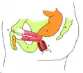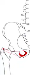 ![]() Правая лобковая кость, обозначена красным | |