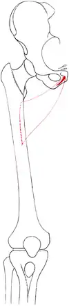 Места прикрепления и проекция правой наружной запирательной мышцы