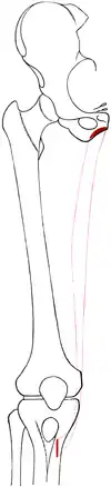 Клада динозавров по структуре тазобедренного сустава, в том числе, не в последнюю очередь по положению лобковой кости, подразделяется на ящеротазовых и птицетазовых[4]. «Опистопубичный» тазобедренный сустав является условием, при котором лобковая кость простирается назад, к хвосту животного. Данная черта также присутствует у птиц[5]. В «пропубичном» тазобедренном суставе, наоборот, лобковая кость простирается вперёд к животу животного, как это видно на структуре тазобедренного сустава ящеротазового, указанной на рисунке ниже. Вертлужная впадина, о которой можно подумать как о разъёме шарнирного бедренного сочленения, представляет собой отверстие на каждой стороне тазового пояса, образованного там, где седалищная, подвздошная кости и лобок соединяются, и в который вставляется головка бедренной кости. Ориентация и расположение вертлужной впадины — одна из главных морфологических черт, приведших к тому, что динозавры ходили в вертикальном положении с расположением ног прямо под туловищем[6]. «Препубичный отросток» — костное расширение лобка, которое проходит вперёд от гнезда бедра к передней части животного. Такая адаптация предположительно сыграла определённую роль в поддержании мышц живота.