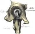 Левая часть тазобедренного сустава, видимая после снятия нижней части вертлужной впадины изнутри таза