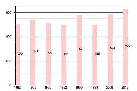 Население коммуны в 2011 году составляло 612 человек[6], в 2012 году — 627 человек[7], а в 2013-м — 627 человек[5].