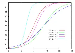 Функция плотности вероятности логистического распределения задаётся формулой: