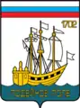 В голубом поле оснащённый корабль и на средней мачте Императорский штандарт, в знак того, что на находящейся в сем городе верфи построенные Олончанами корабли, первые вышли в Балтийское море под Императорским флагом[5].