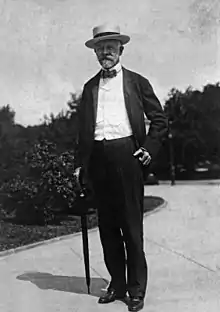 Генри Кэбот Лодж (12 мая 1850 — 9 ноября 1924) — американский республиканский политик, историк и государственный деятель из Массачусетса. Он работал в Сенате США с 1893 по 1924 год и наиболее известен своими внешнеполитическими позициями. Его успешный «крестовый поход» против Версальского договора Вудро Вильсона гарантировал, что Соединенные Штаты никогда не присоединятся к Лиге Наций, и его оговорки против этого договора повлияли на структуру современной Организации Объединенных Наций[5][6].