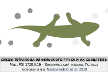 Первым наземным позвоночным присуща симметричная локомоция: шаги, когда все лапы работают поочерёдно с равными интервалами.